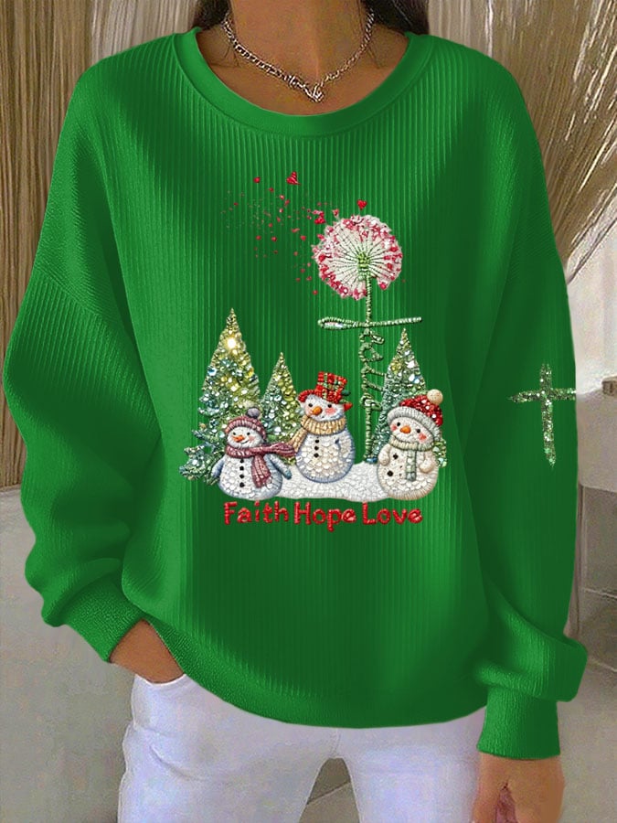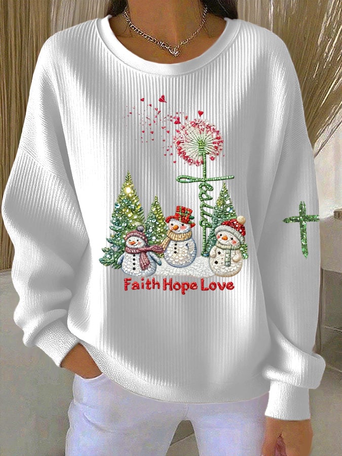 Women's Faith Hope Love Christmas Snowman Print Casual Sweatshirt