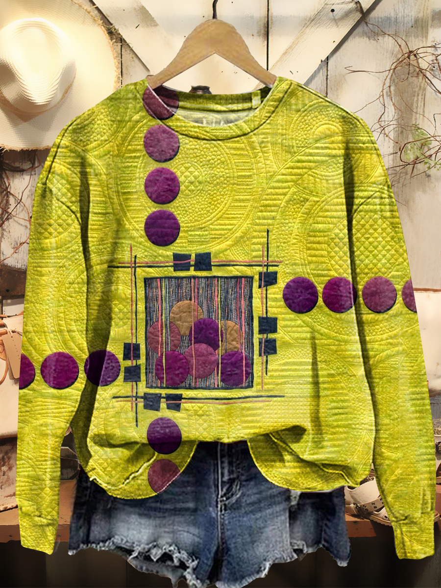 Women's Retro Yellow Geometric Abstract Art Print Casual Round Neck Pullover Sweatshirt