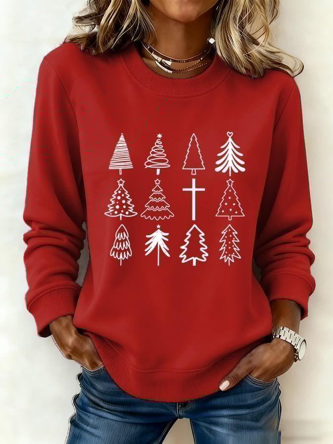 Women's Christmas Tree Printed Crew Neck Sweatshirt