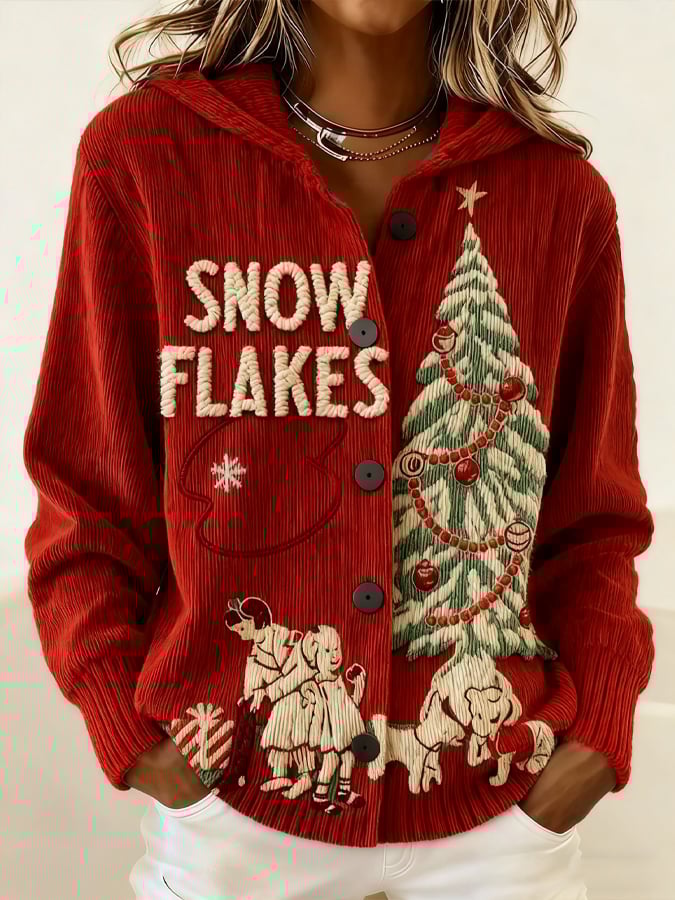 Women's Vintage Christmas Tree Pattern Art Print Casual Cotton Shirt