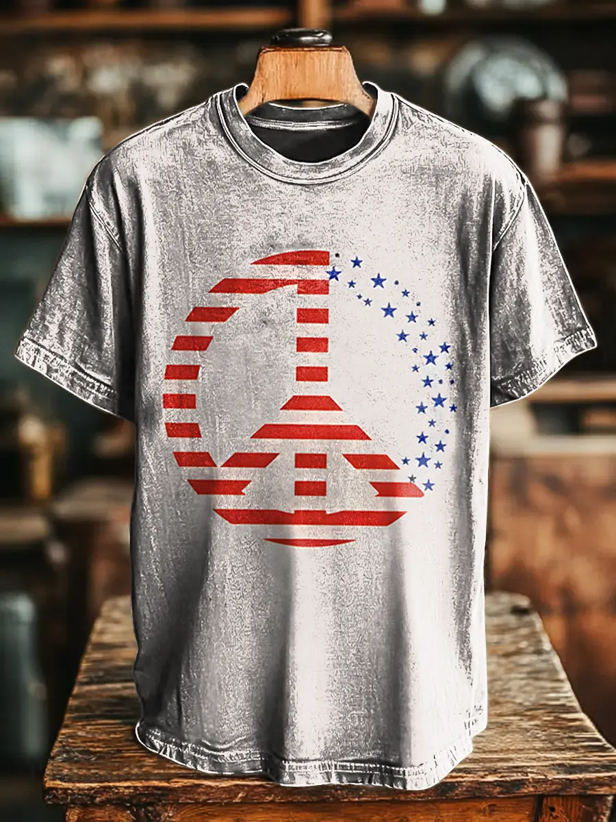 Hippie Peace Color Blocks Stars Flag Unisex Vintage Art Print Casual T-shirt