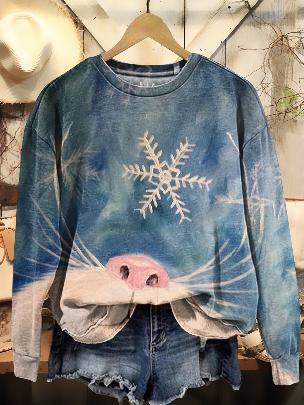Cute Cat Christmas Snowflake Art Print Hoodie