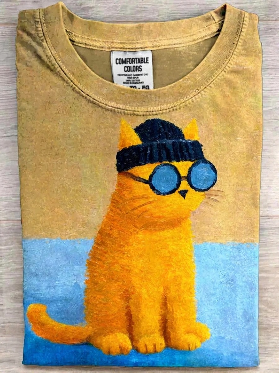 Funny Cat Print Casual Short-Sleeve T-Shirt