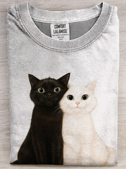 Funny Cute Cat Art Print Casual Cotton Short Sleeve T-shirt