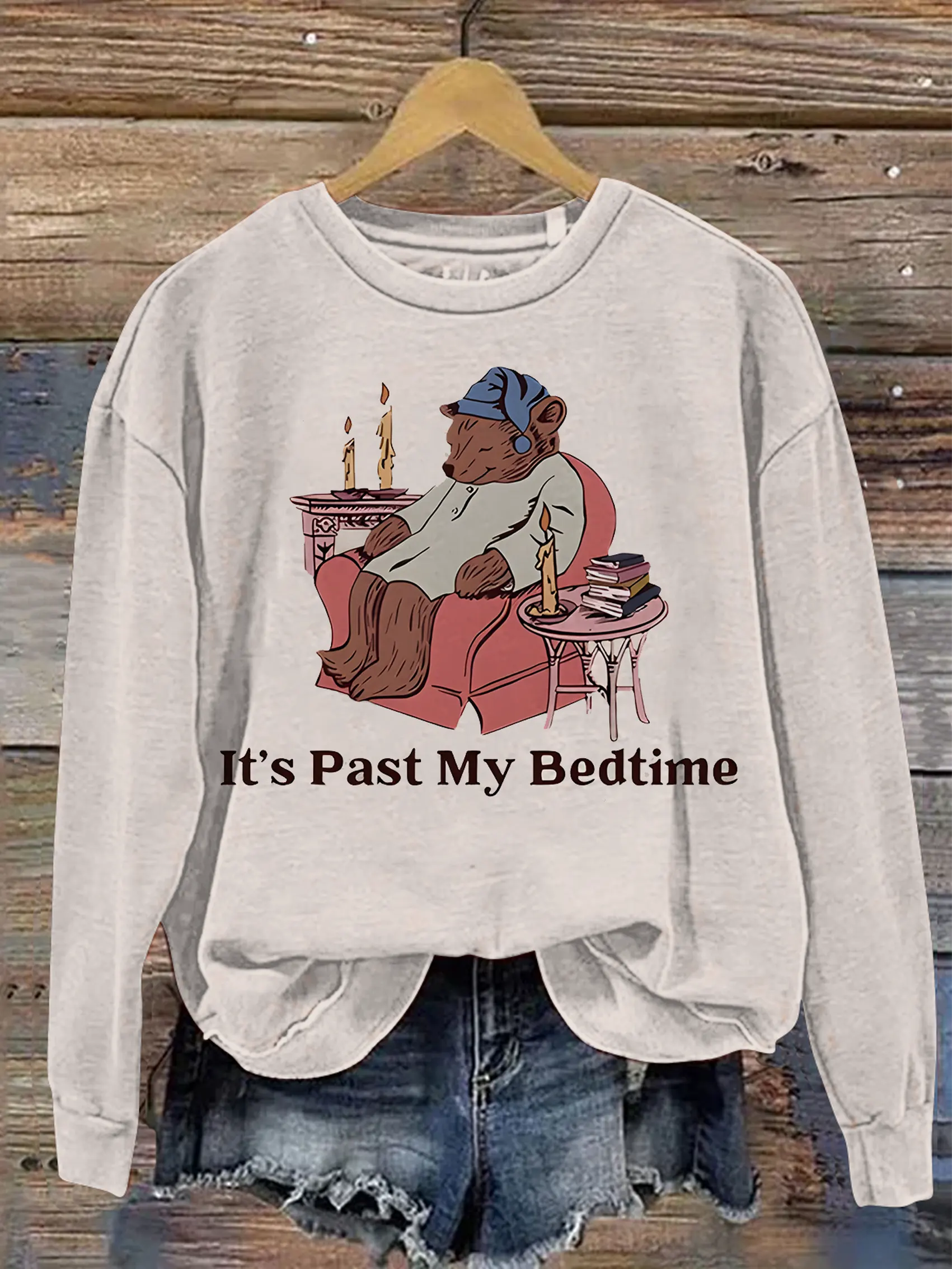 Retro It's Past My Bedtime Bear Art Print Casual Sweatshirt