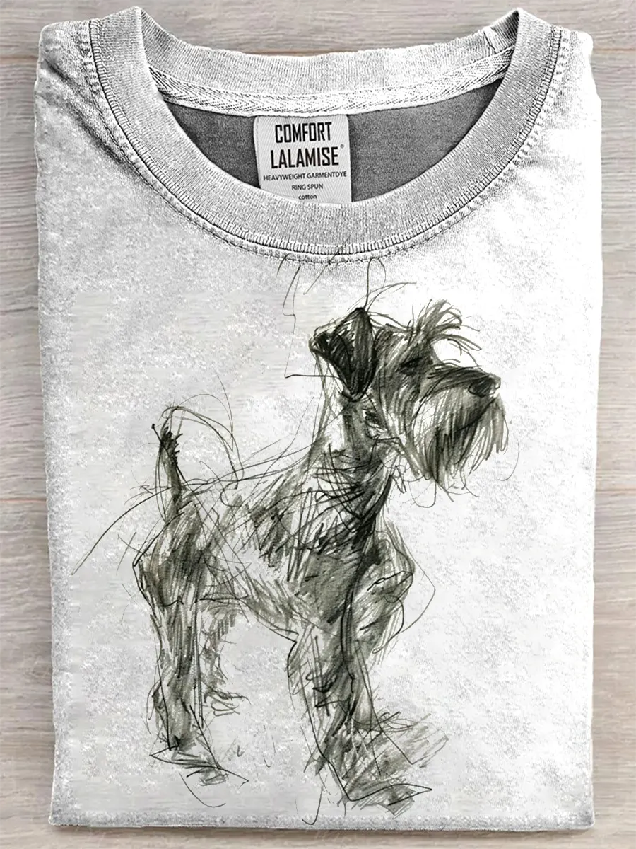 Retro Schnauzer Abstract Art Print Casual Pure Cotton Short Sleeved T-shirt