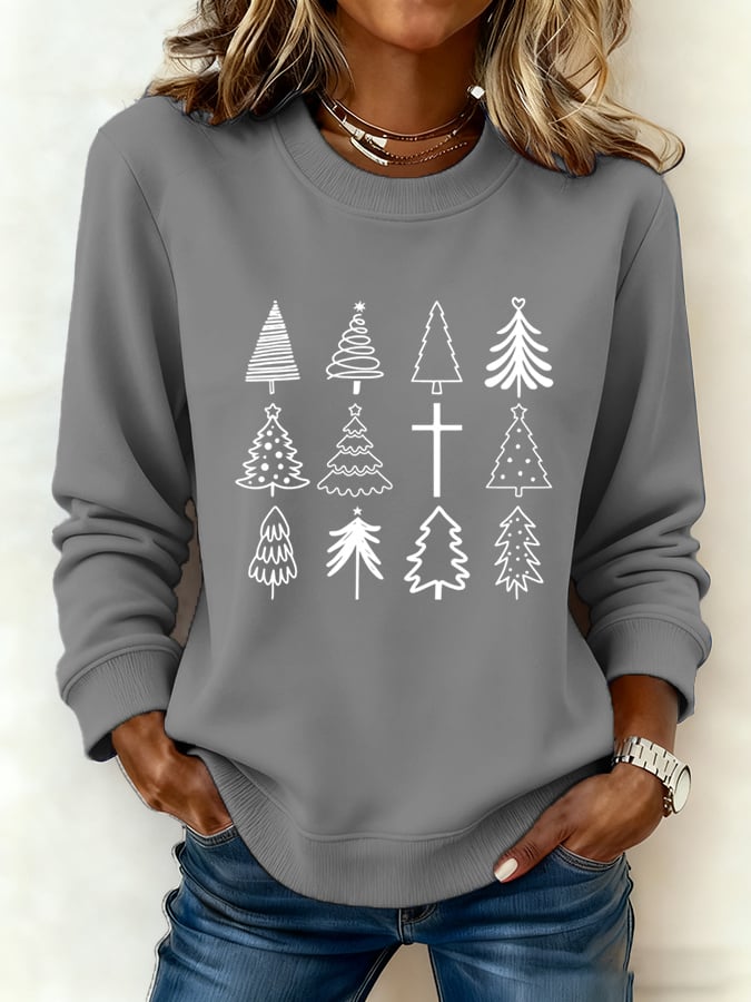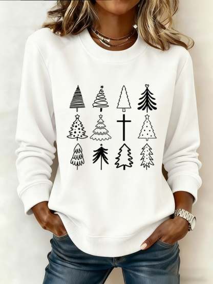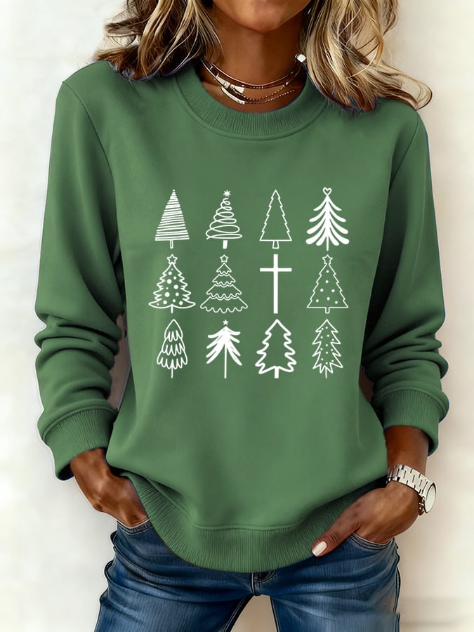 Women's Christmas Tree Printed Crew Neck Sweatshirt