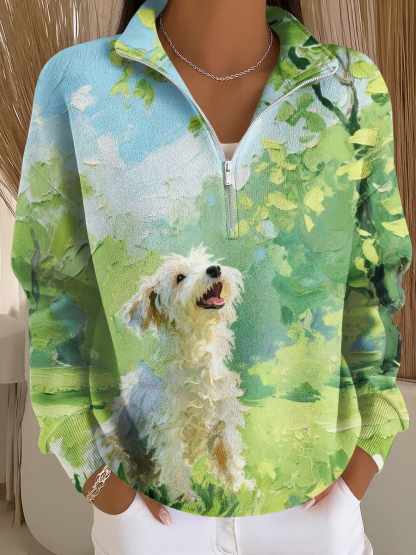 Women's Dog Art Print Casual Sweatshirt