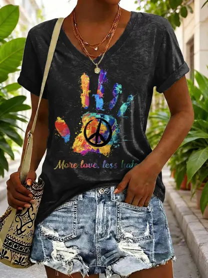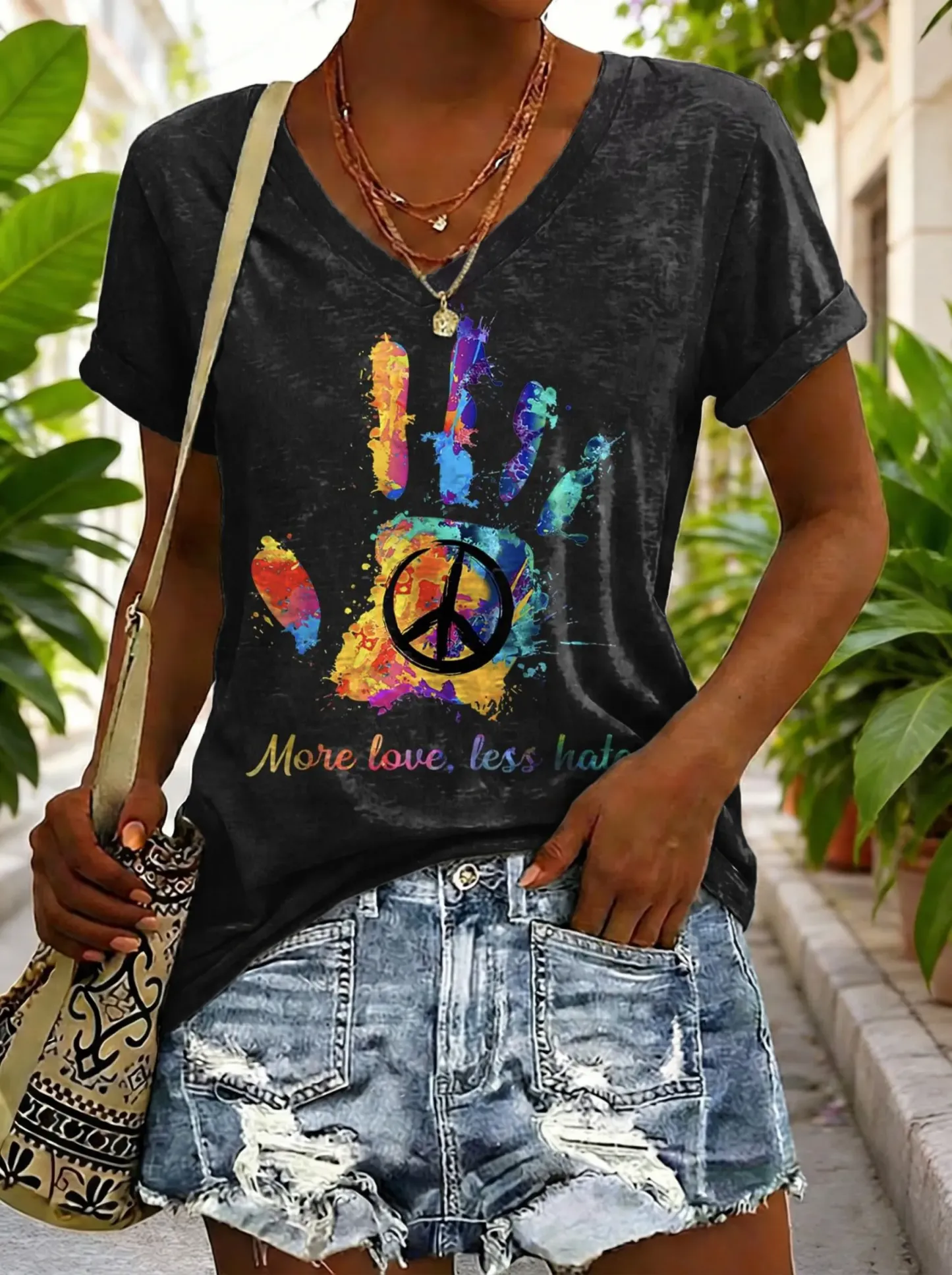 Women's Hippie Art Print Casual Short-sleeved V-neck Cotton T-shirt