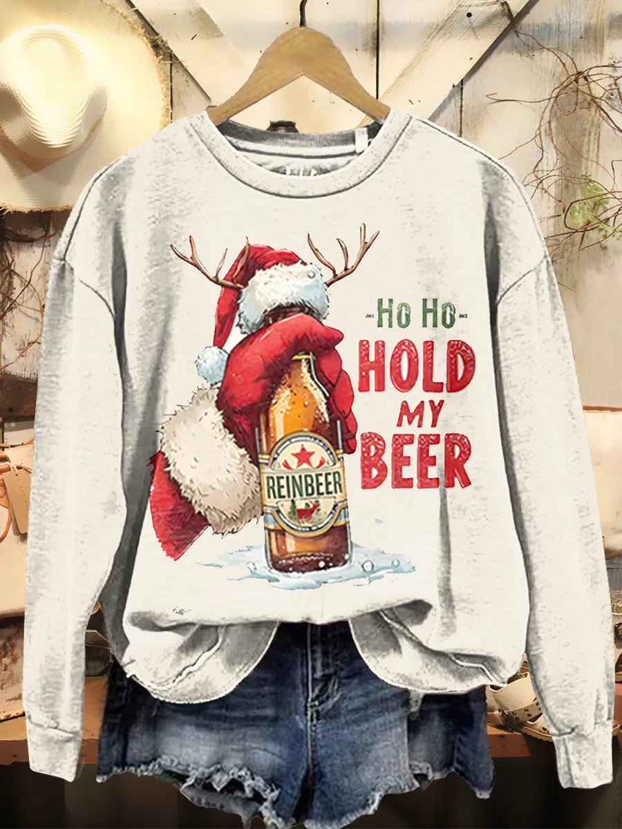 Women's Retro Christmas Art Print Casual Long Sleeve Crew Neck Sweatshirt