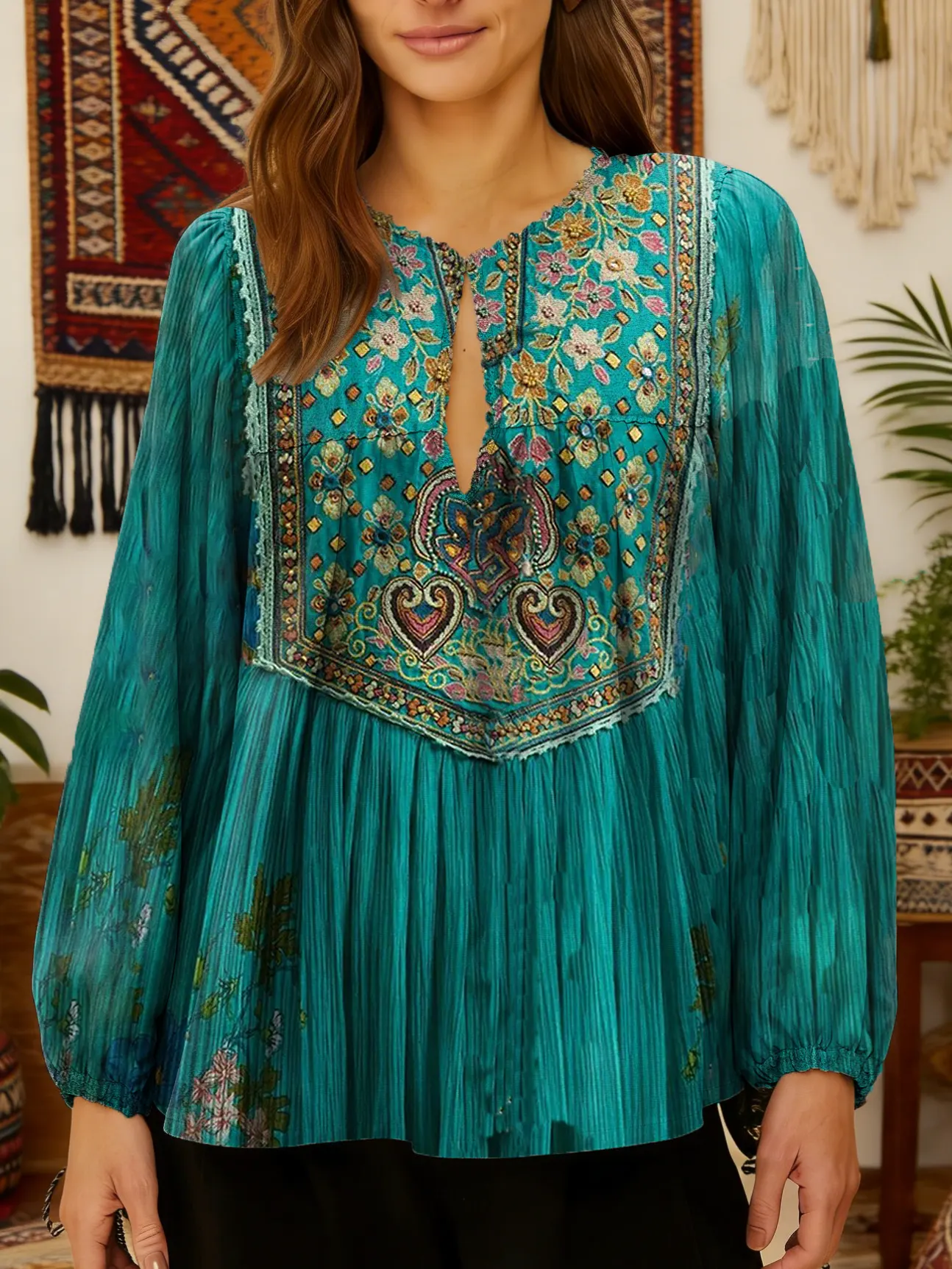 Women's Vintage Ethnic Floral Pattern Art Print Casual Long Sleeve