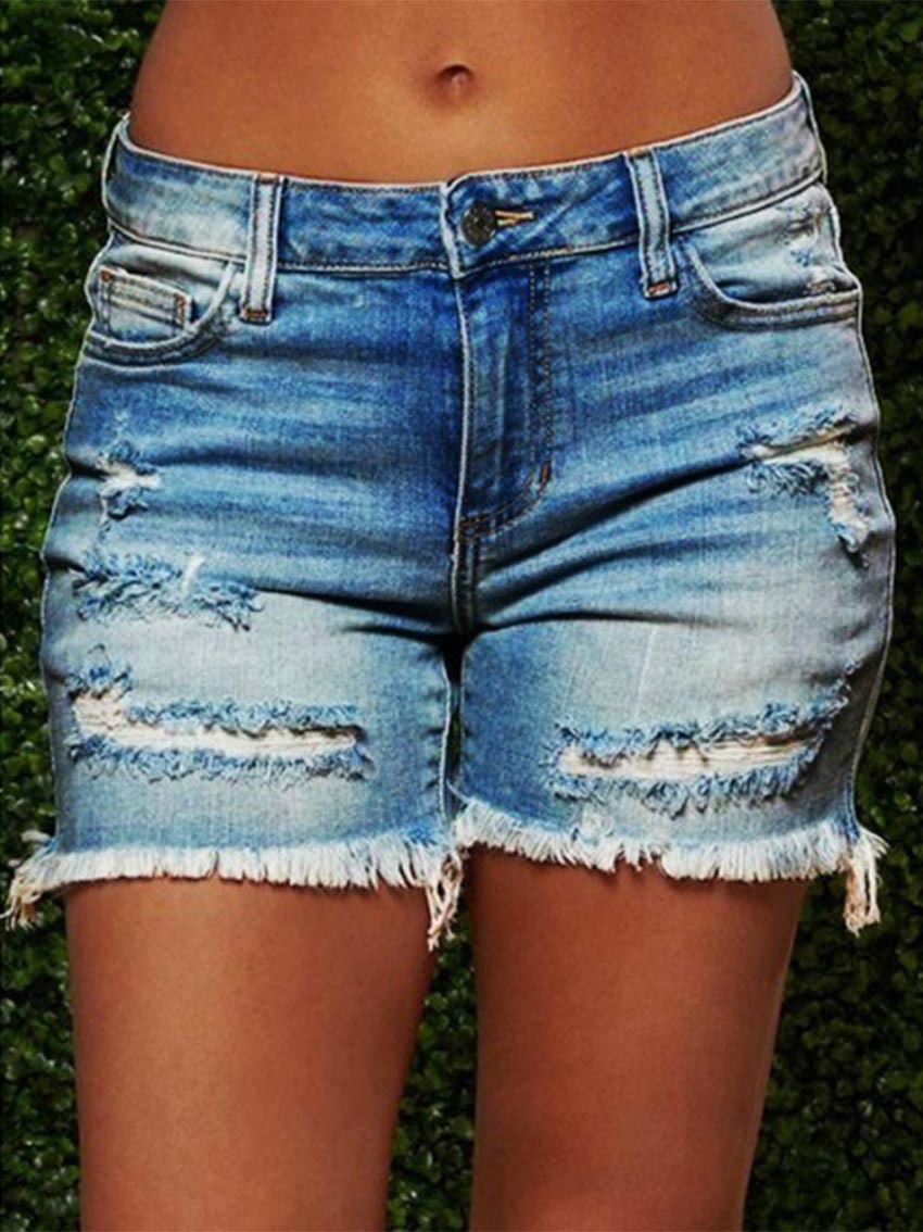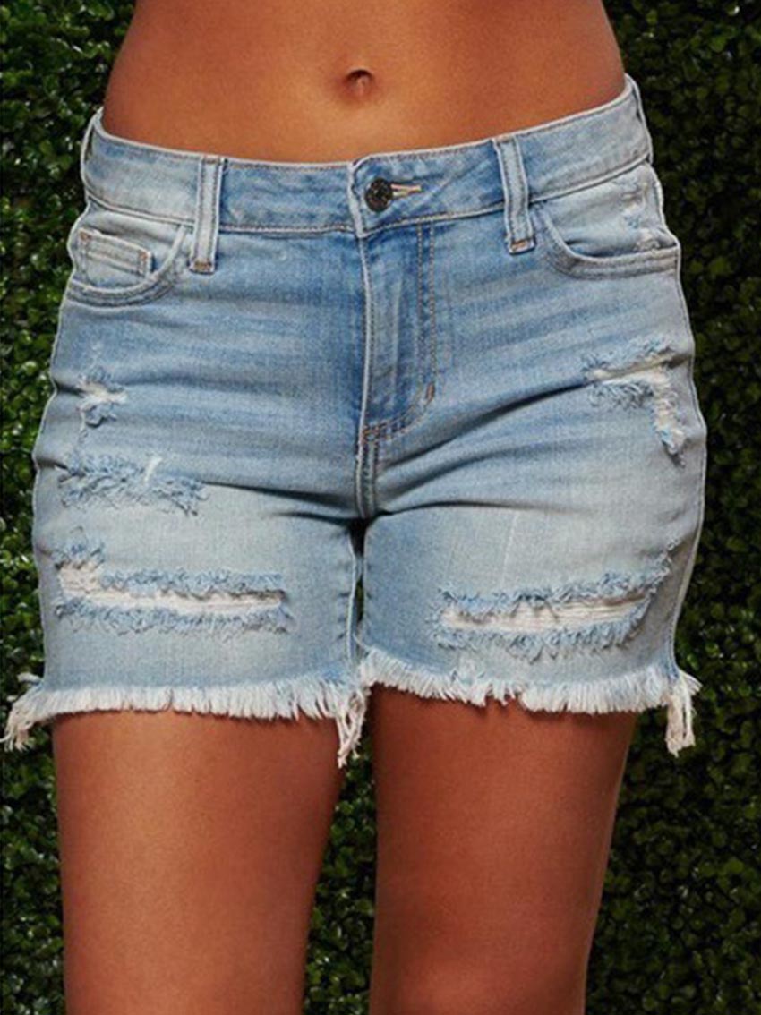 Ripped Luxu Ladies High Stretch Denim Shorts