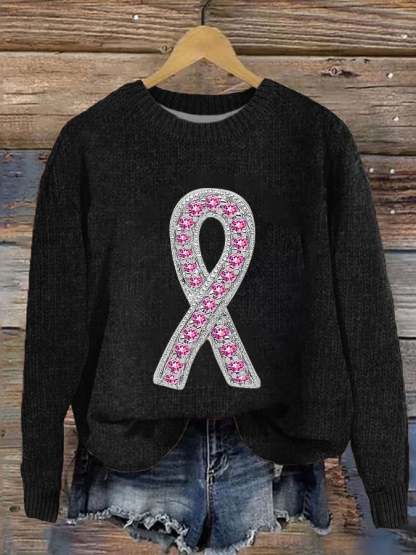 Womens Breast Cancer Awareness Jewelry Pink Ribbon Casual Sweater