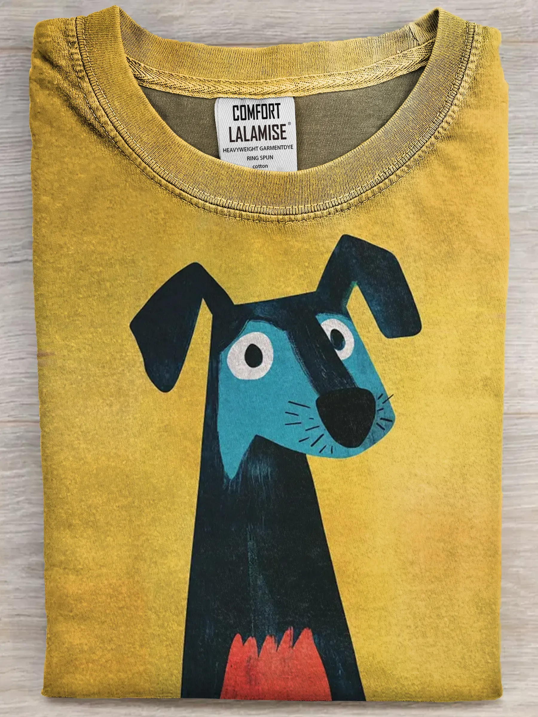 Funny Retro Cute Multicolor Dog Art Print Casual Cotton Short Sleeve T-shirt
