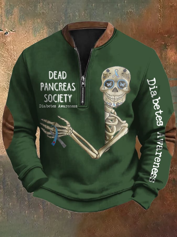 Men's Vintage Zipper Diabetes Awareness Dead Pancreas Society Print Sweatshirt