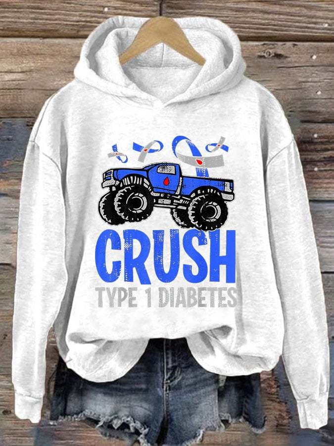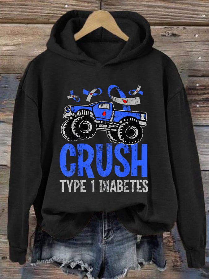 Retro Diabetes Awareness Truck Crush Type 1 Diabetes Blue Ribbon Print Hoodie