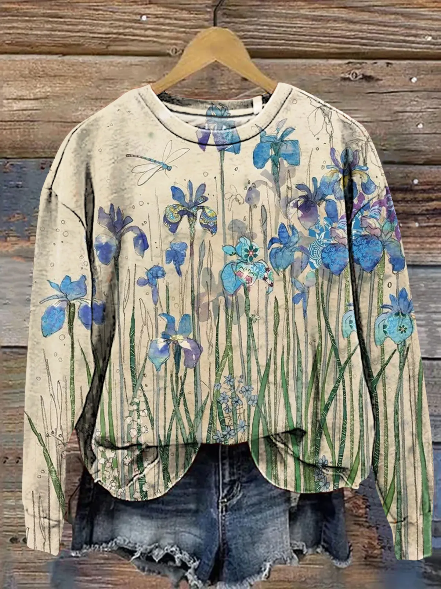 Retro Floral Print Casual Sweatshirt
