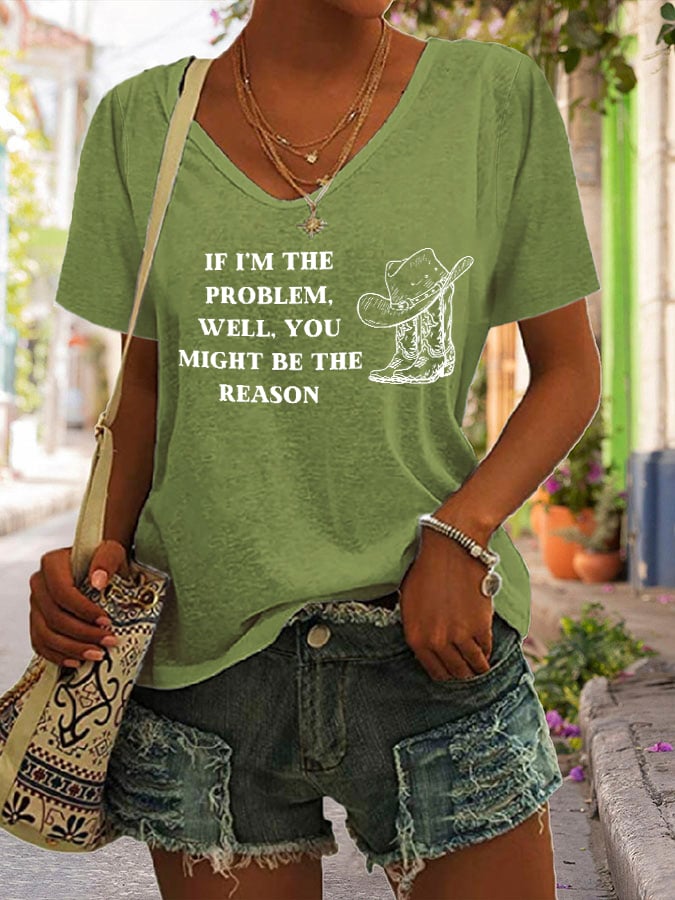 Women's If I'm The Problem Then You Might Be The Reason Western Country Music Dangerous Printed Short-Sleeved T-Shirt