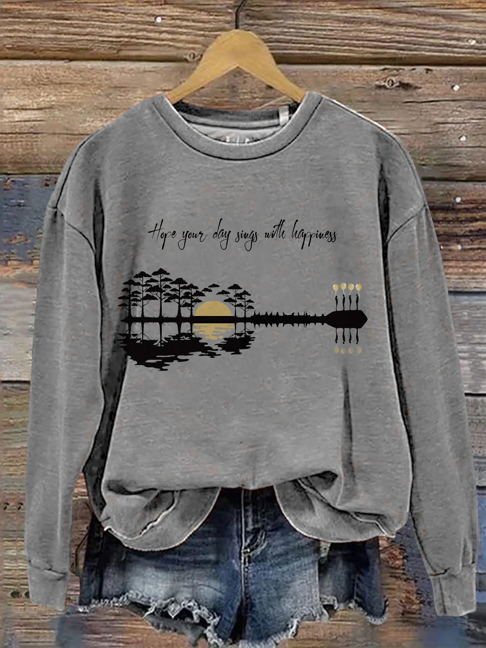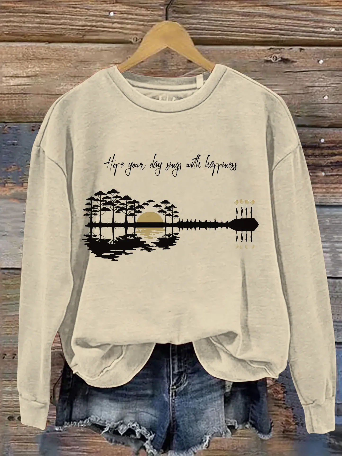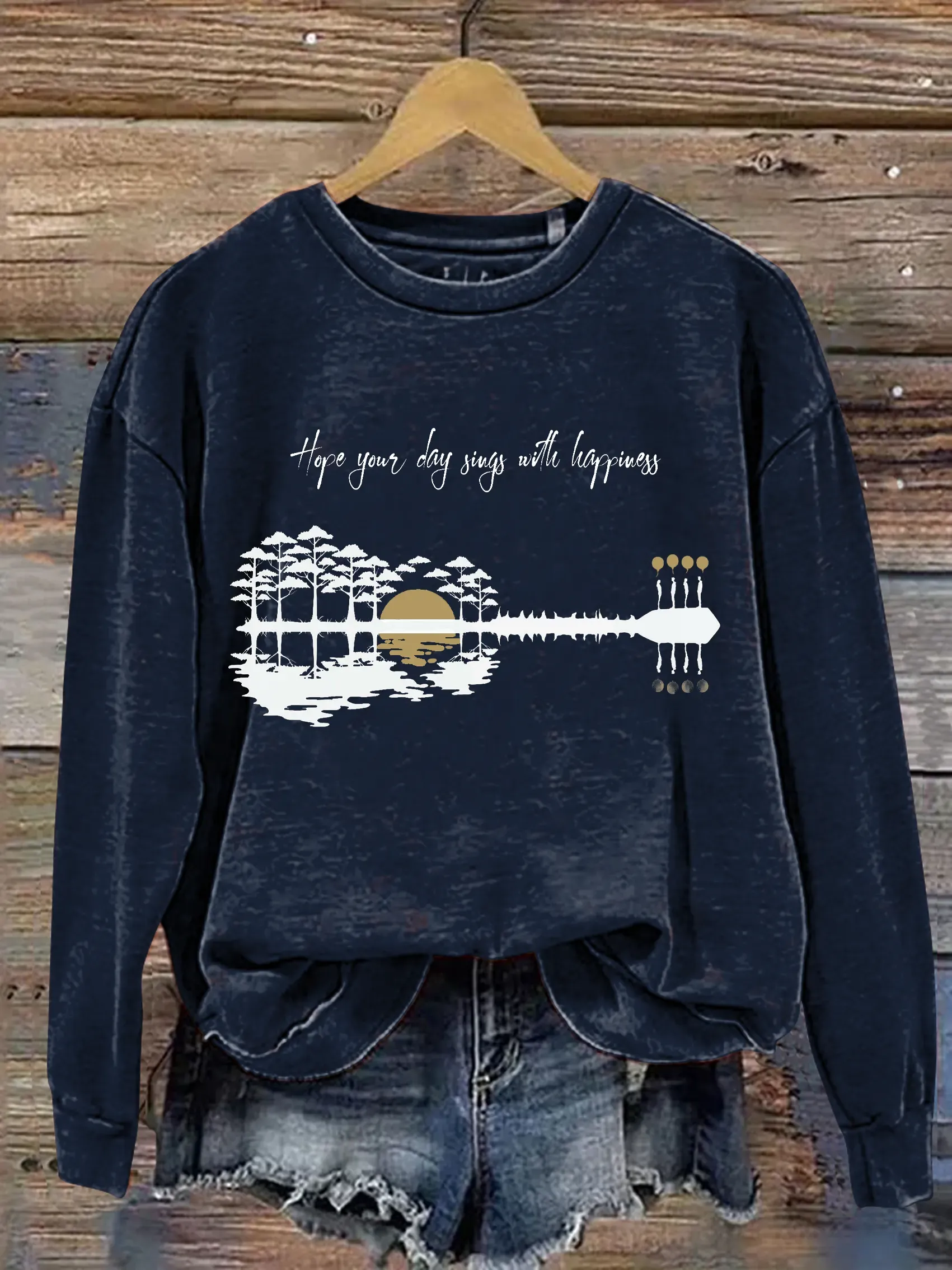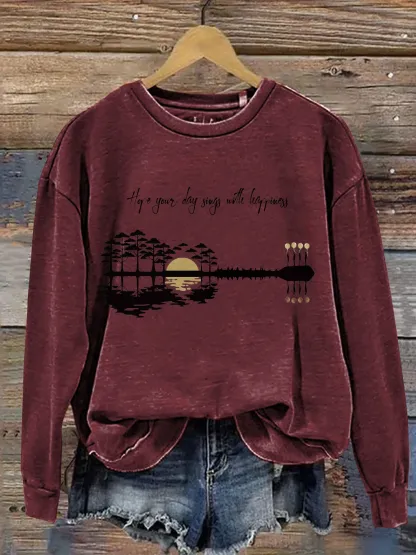 Hope Your Day Songs With Happiness Print Casual Sweatshirt