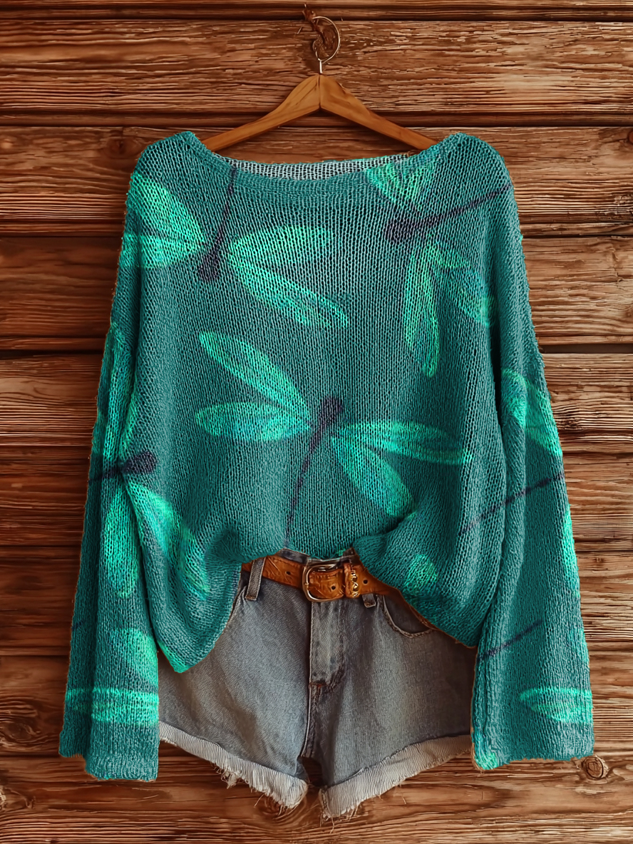 Women's Bohemian Dragonfly Art Print Casual Pullover Sweater