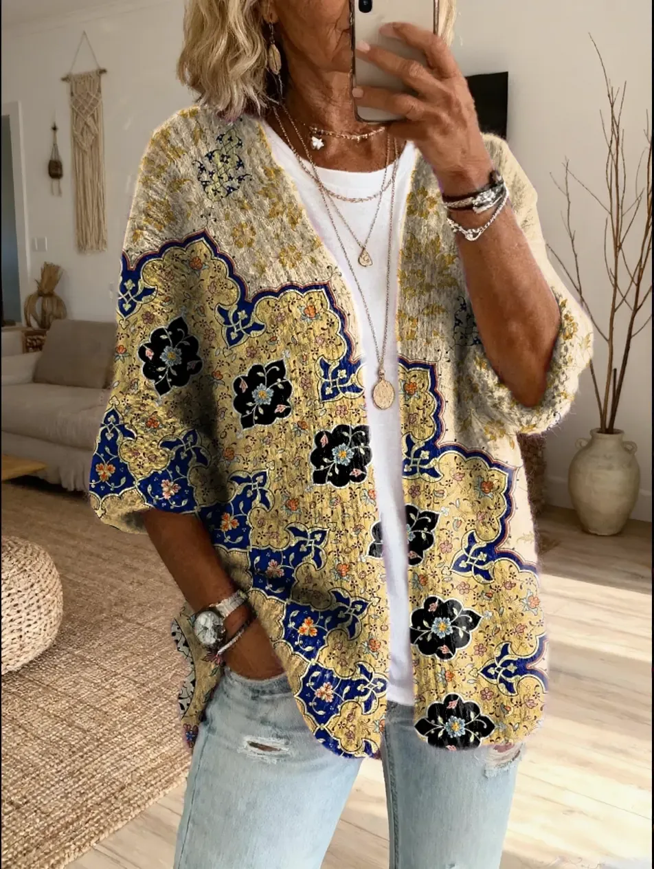 Women's Bohemian Hippie Ethnic Floral Art Print Casual Cardigan Sweater