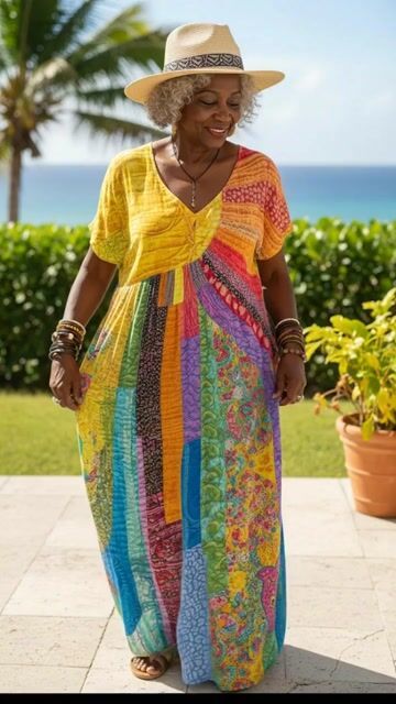 Women's Colorful Sunshine Print Pocket Cotton Dress