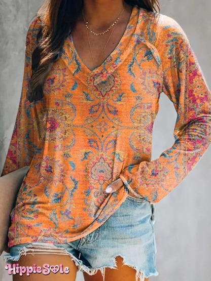 Women's Retro Ethnic Totem Printed Flowy Cotton Crew Neck Dress