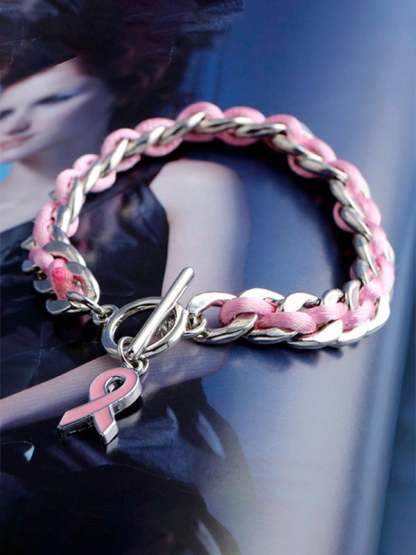 Braided Pink Ribbon Bracelet