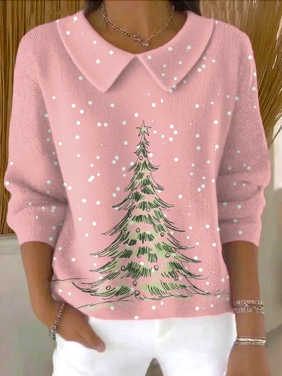 Christmas Tree Casual Peter Pan Collar 3/4 Sleeve Sweater