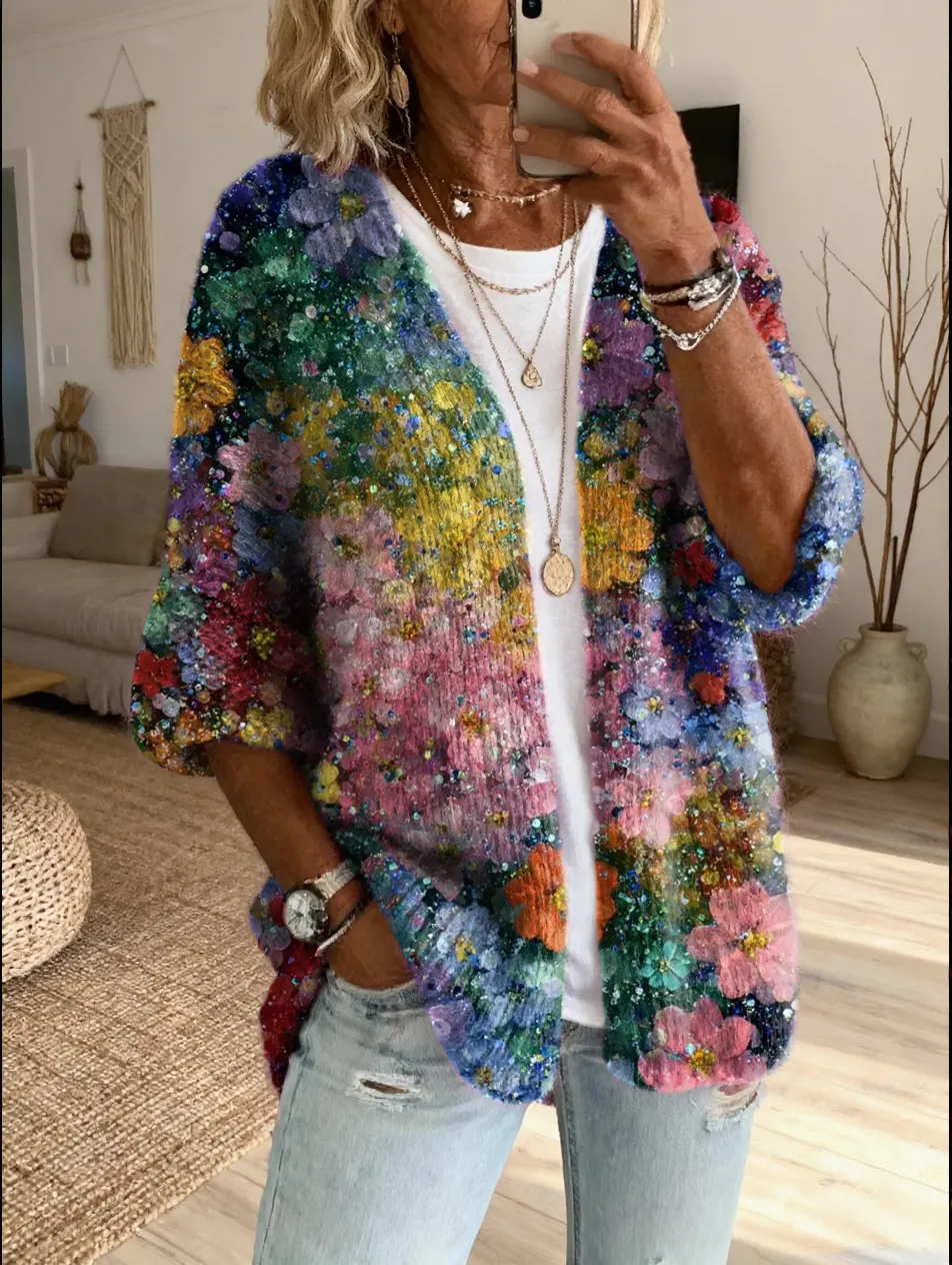 Ethnicity Colorful Flowers Women's Art Print Casual Cardigan Sweater
