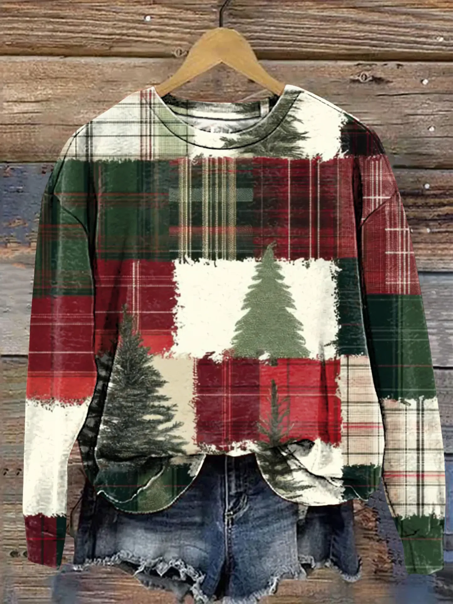 Retro Christmas Tree Print Casual Sweatshirt