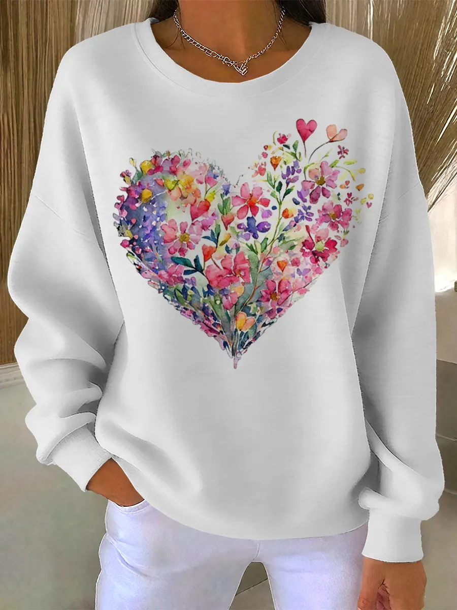 Vintage Floral Heart Art Print Casual Sweatshirt