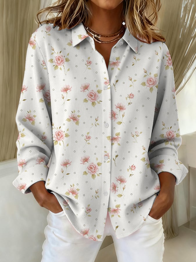 Women's Breast Cancer Art Floral Print Linen Comfort Shirt
