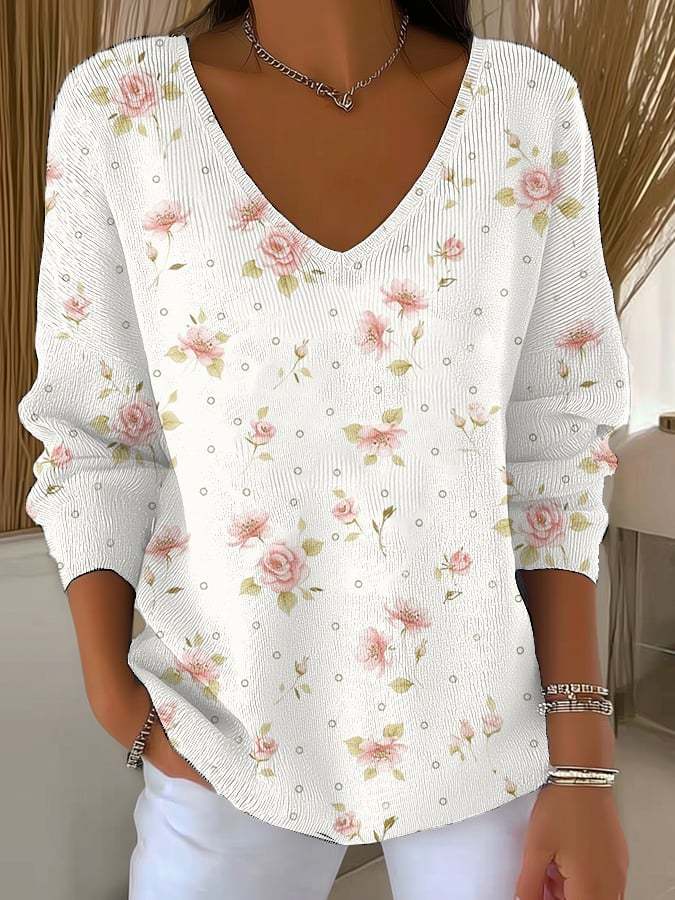 Women's Breast Cancer Art Floral Print Sweater