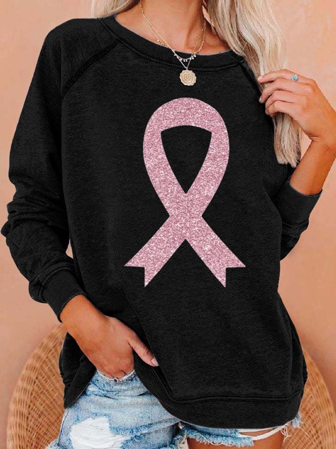 Women's Breast Cancer Awareness Print Casual Sweatshirt