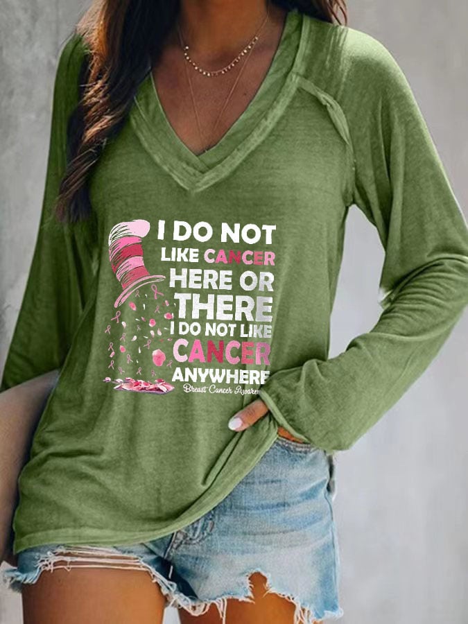 Women's I Do Not Like Cancer Here Or There Printed V-Neck Long Sleeve Top