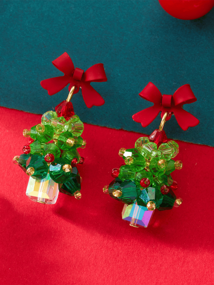 Women's Vintage Christmas Beaded Sparkle Christmas Tree Earrings