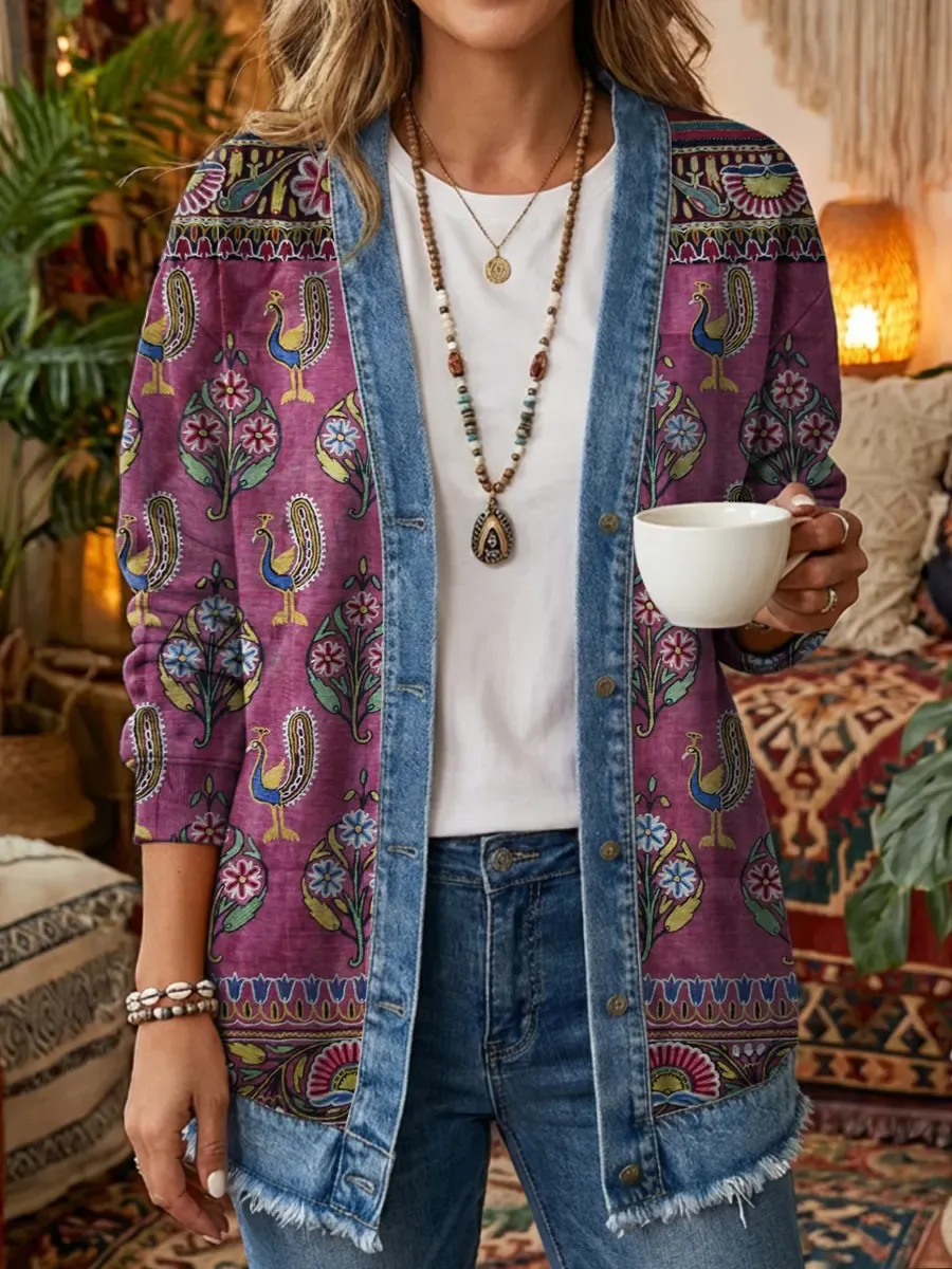 Women's Vintage Pattern Art Print Casual Long-sleeved Shirt/jacket