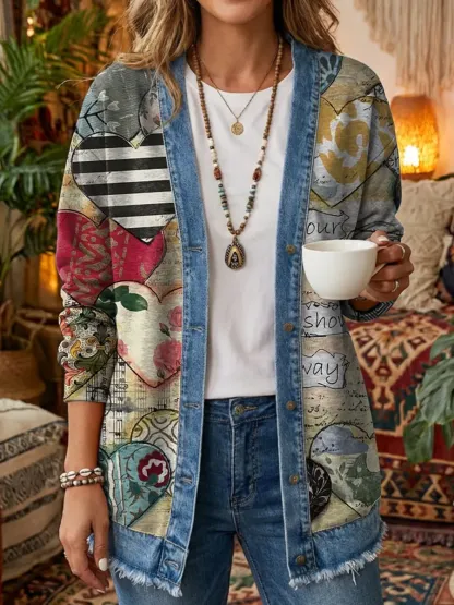 Women's Vintage Pattern Heart Art Print Casual Long-sleeved Shirt/jacket