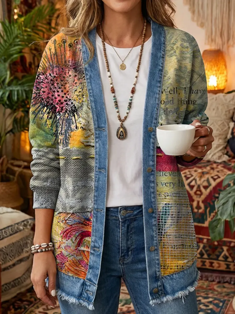 Women's Vintage Pattern Patchwork Art Print Casual Long-sleeved Shirt/jacket