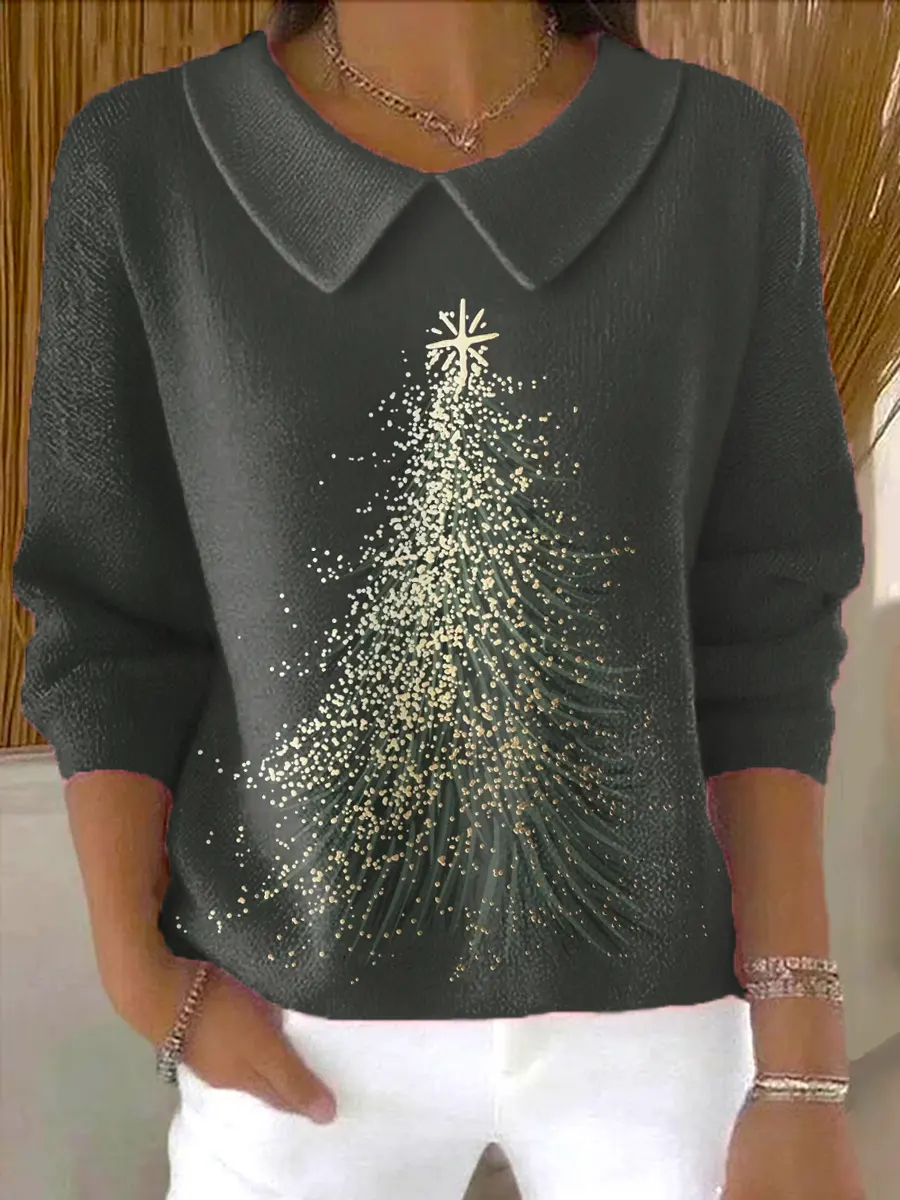 Christmas Tree Casual Peter Pan Collar 3/4 Sleeve Sweater