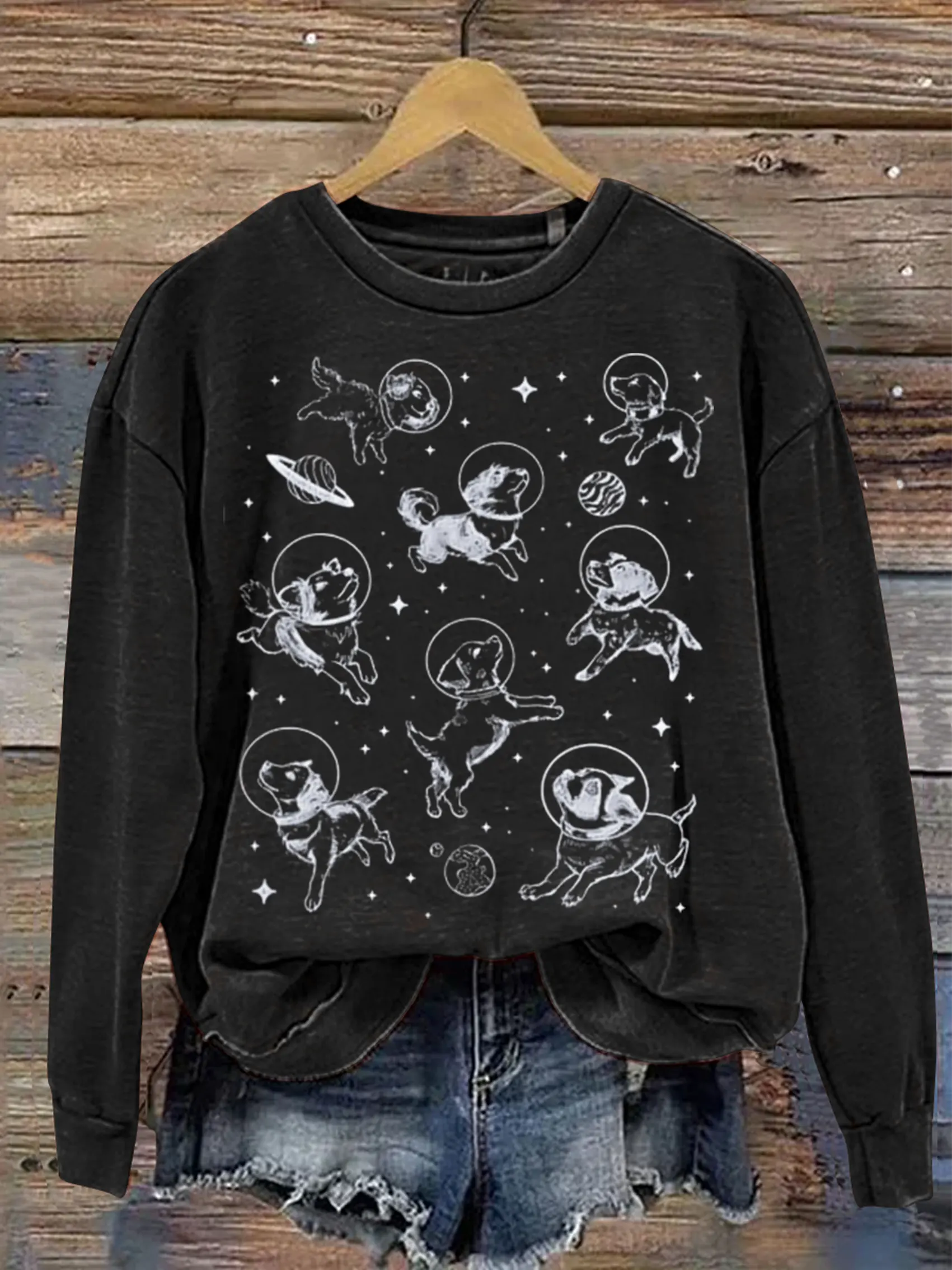 Retro Cute Dog Art Print Casual Sweatshirt