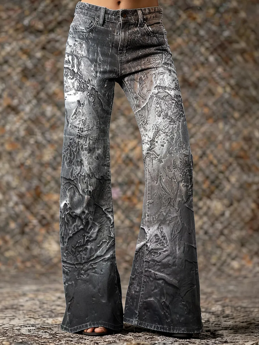 Women's Vintage Gradient Cool Abstract Hippie Art Printed Casual Slim Denim Flared Pants