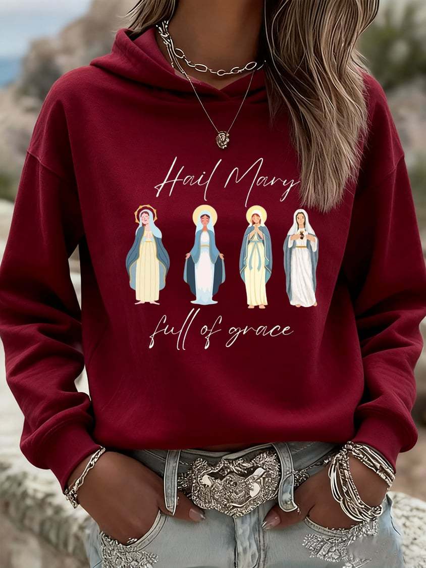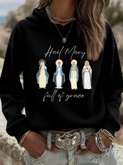 Women's Winter Christ Mary Christmas Print Hoodie