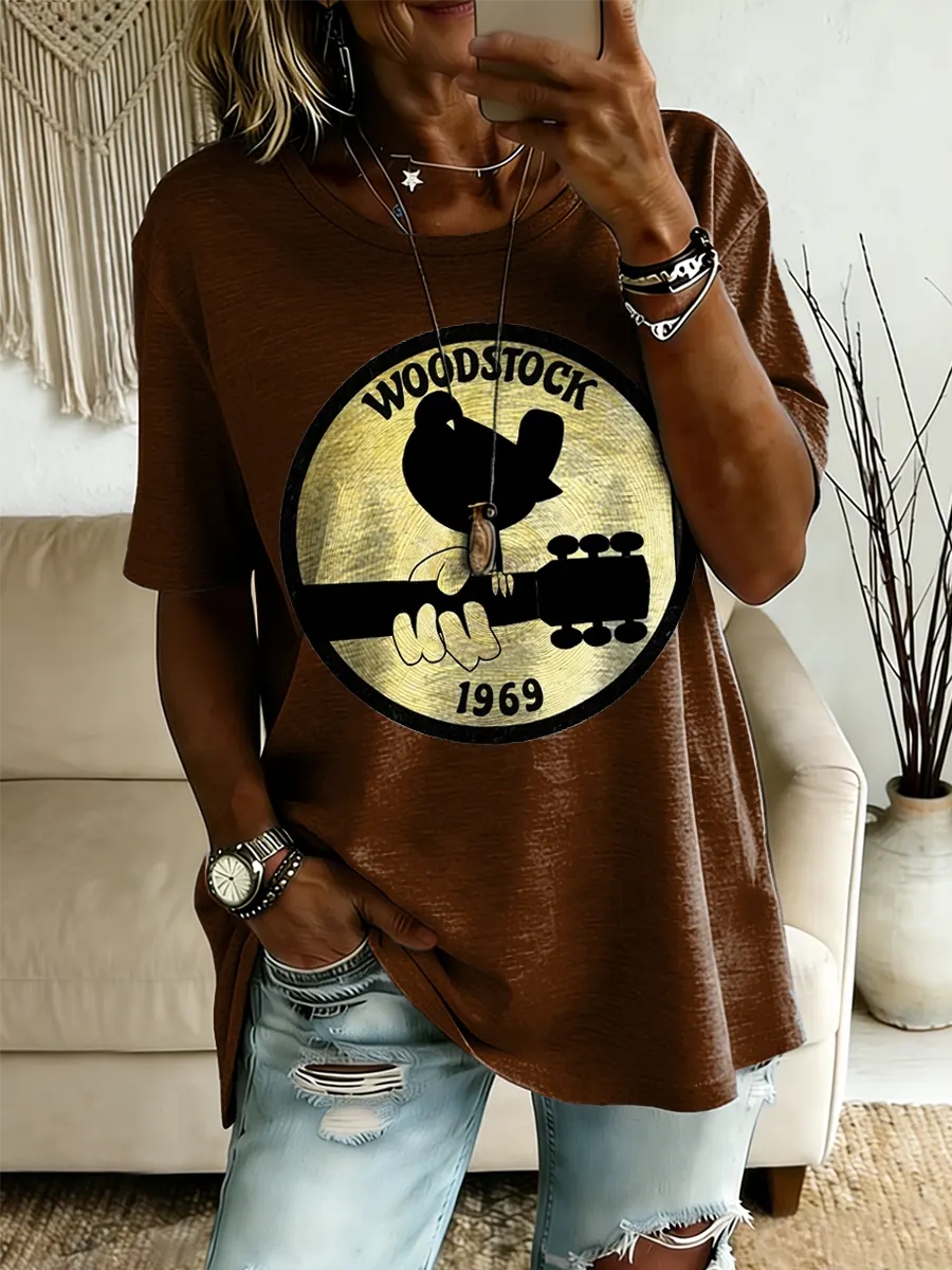 Woodstock 1969 Women And Men's Vintage Art Print Casual T-shirt