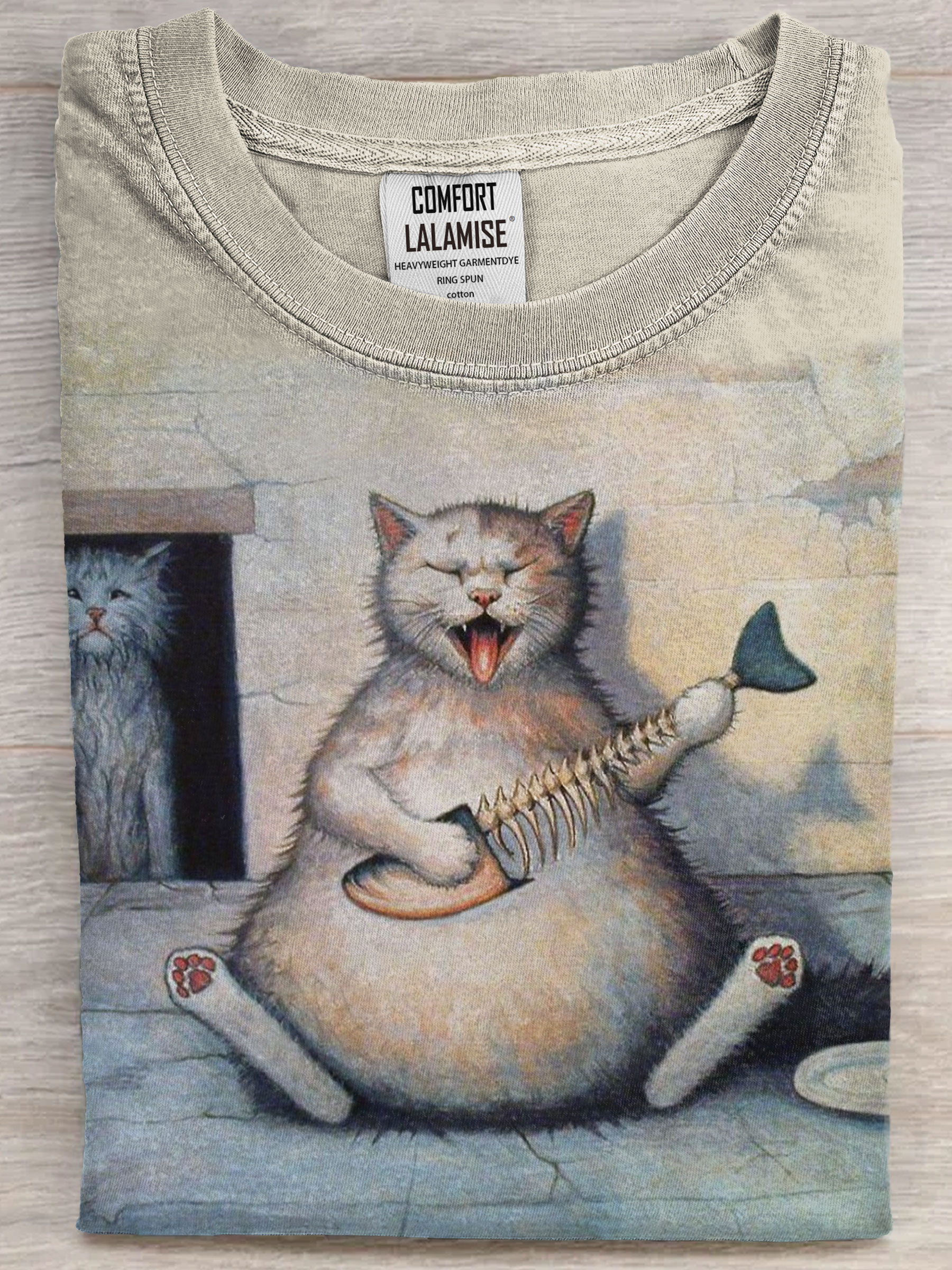 Funny Cat Art Print Casual Short Sleeve T-shirt