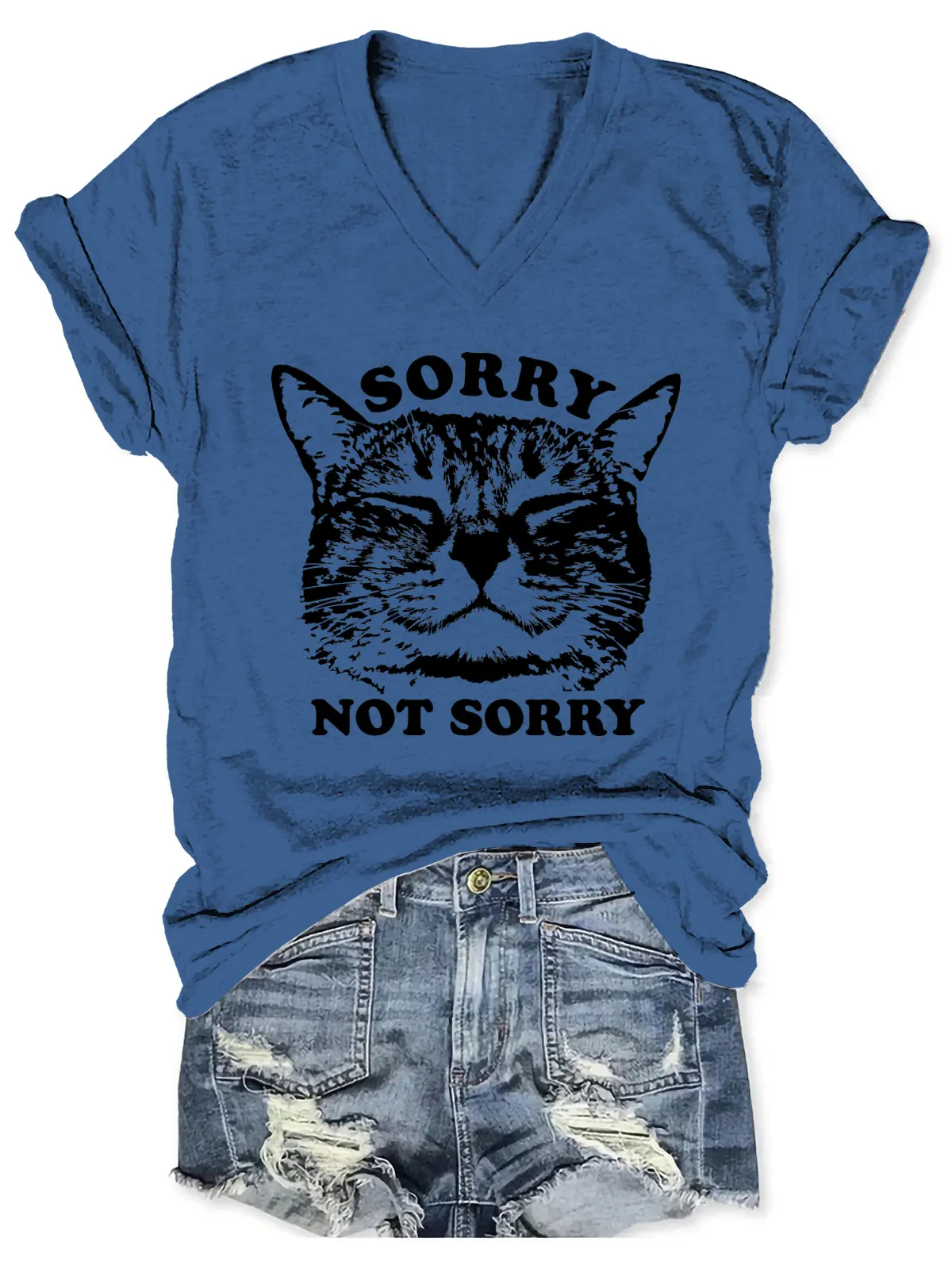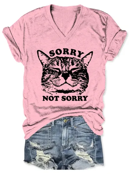 Sorry Cute Cat Vintage Art Print V-neck T-shirt