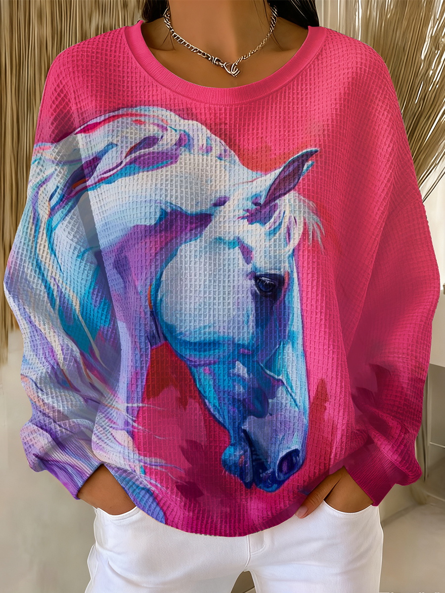 Vintage Horse Art Print Crew Neck Sweatshirt