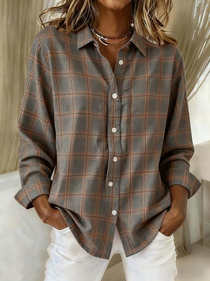 Women's Casual Retro Plaid Print Shirt