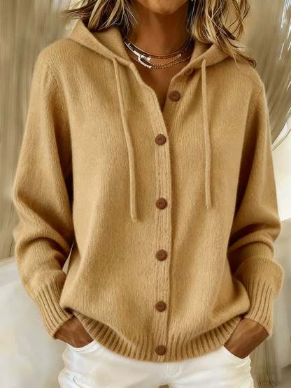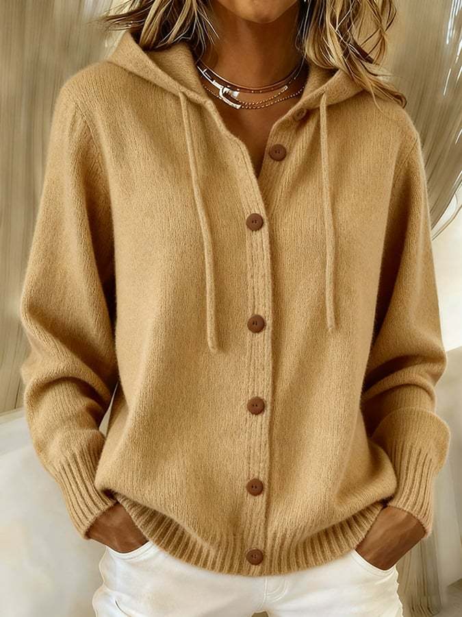 Women's Casual Retro Solid Color Knitted Hooded Cardigan